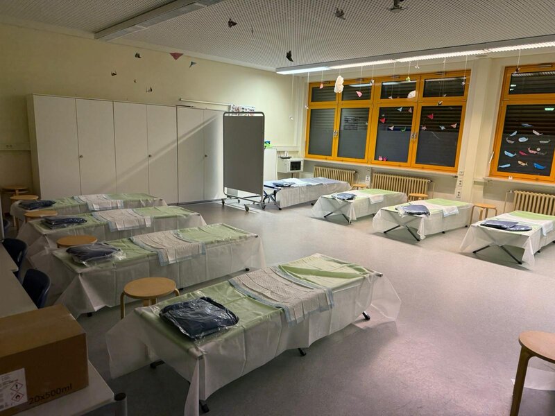 Eine besondere Herausforderung stellte die Versorgung von rund 40 pflegebedürftigen Personen dar, die üblicherweise in ihrer häuslichen Umgebung gepflegt werden. Diese wurden in der Schule untergebracht und mithilfe spezieller Feldbetten versorgt, die vom Land Niedersachsen für solche Einsatzlagen bereitgestellt wurden.